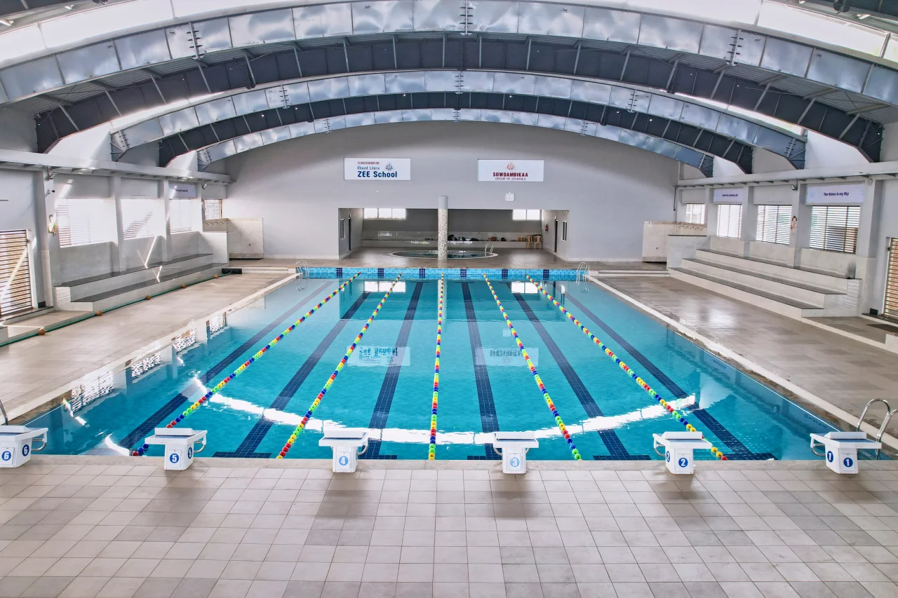 First of its kind clerestory Indoor Swimming pool of semi Olympic size with 6 lanes.